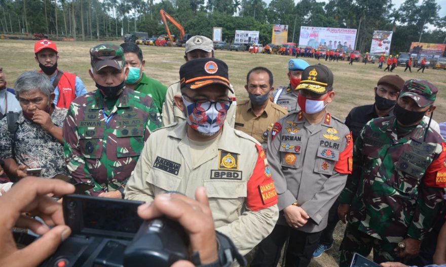 “Antisipasi musim kemarau cukup panjang serta areal yang sering terbakar merupakan lahan gambut dan saat ini lagi pandemi dihimbau tetap mematuhi protokol kesehatan dengan selalu menggunakan masker, jaga jarak aman, cuci tangan dengan sabun agar terlindungi dan upaya memutus rantai penyebaran covid-19,” kata Sudirman.