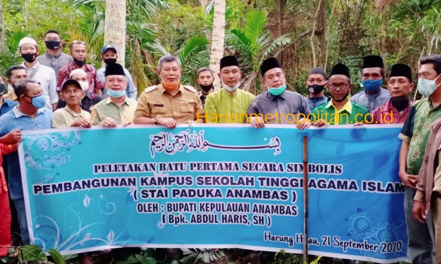 harianmetropolitan.co.id, Anambas – Bupati Kabupaten Kepulauan Anambas, Abdul Haris, meresmikan peletakan batu pertama pembangunan kampus STAI PADUKA Kepulauan Anambas, Desa Tiangau, Kecamatan Siantan selatan, Senin 21 September 2020.