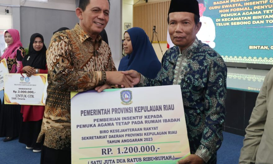 Sementara itu bantuan berupa Dana Insentif diberikan kepada Tim Pembinaan dan Pengawasan Keagamaan yang terdiri dari Guru TPQ, Penyuluh Non-ASN dan Pemuka Agama di Kabupaten Bintan dianggarkan sebesar Rp1,79 miliar untuk 1.495 penerima, masing-masing Rp1,2 juta. Dan bantuan Guru dan Tenaga Kependidikan (GTK) SMA, SMK, SLB Swasta menerima besaran sebanyak Rp2 Juta termasuk pajak 5% dengan total anggaran Rp184 Juta dengan 92 orang penerima.