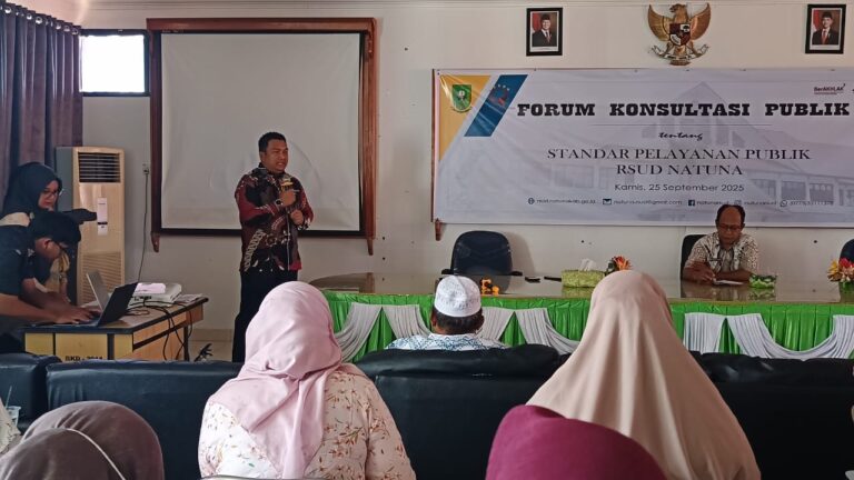 NATUNA, harianmetropolitan.co.id- Rumah Sakit Umum Daerah (RSUD) Natuna menggelar Forum Konsultasi Publik (FKP) di aula rumah sakit, sebagai upaya menampung aspirasi masyarakat demi peningkatan mutu pelayanan kesehatan, Kamis 25 September 2025.