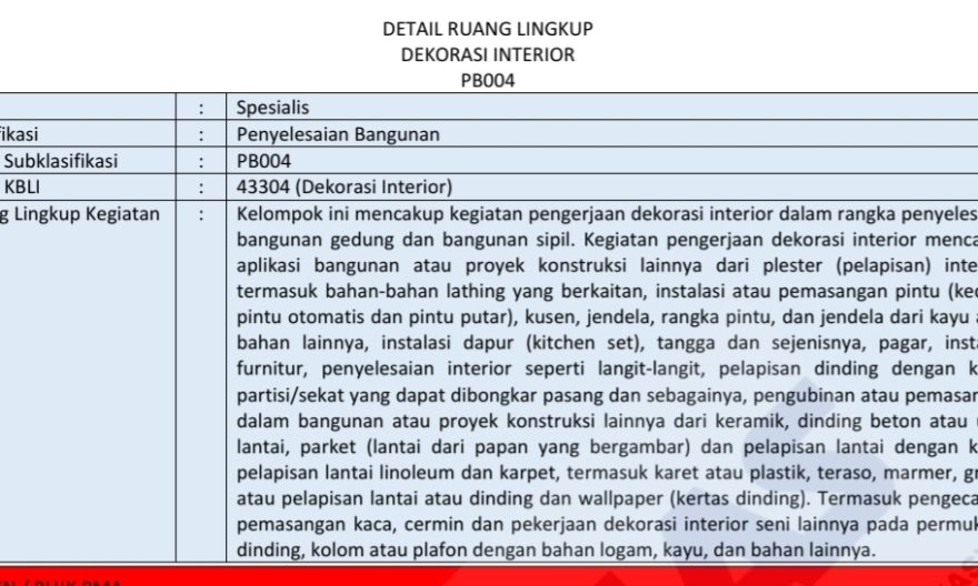 Proyek dengan nilai kontrak Rp 199.396.879 itu seharusnya dikerjakan oleh perusahaan yang memiliki Sertifikat Badan Usaha (SBU) dengan subklasifikasi PB004 (Dekorasi Interior).