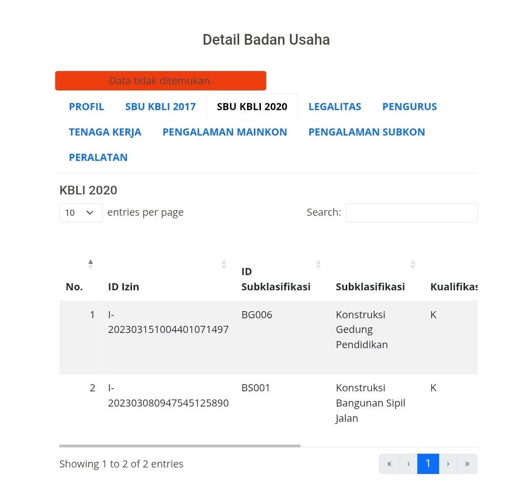 Namun, hasil penelusuran data di Lembaga Pengembangan Jasa Konstruksi (LPJK) menunjukkan CV Sinar Mandiri tidak terdaftar memiliki subklasifikasi tersebut.