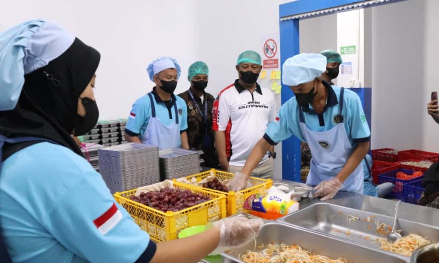 Tak hanya meninjau, Iman juga menyempatkan diri memberi motivasi kepada para pekerja dapur agar tetap disiplin dan bekerja dengan penuh tanggung jawab.