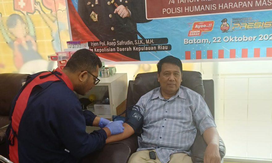 Dalam kegiatan bertajuk “74 Tahun Mengabdi untuk Negeri, Polisi Humanis Harapan Masyarakat”, Bidang Humas Polda Kepulauan Riau mengadakan aksi donor darah yang turut diikuti oleh insan media dari Serikat Media Siber Indonesia (SMSI) Provinsi Kepri dan Kota Batam, Rabu 22 Oktober 2025.