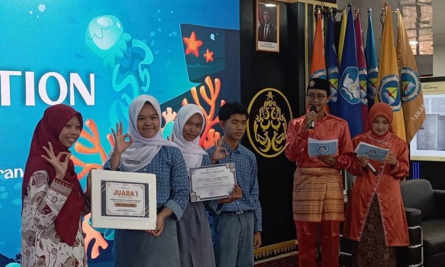 Lingga, harianmetropolitan.co.id – Rasa bangga menyelimuti tim SMAN 1 Lingga Utara, Kabupaten Lingga, Kepulauan Riau setelah berhasil meraih predikat Juara Umum dalam kegiatan edukasi dan kompetisi bertema konservasi pesisir dan perairan yang diselenggarakan Program Studi Manajemen Sumberdaya Perairan (MSP) Fakultas Ilmu Kelautan dan Perikanan (FIKP) Universitas Maritim Raja Ali Haji (UMRAH), pada 25 Oktober 2025.