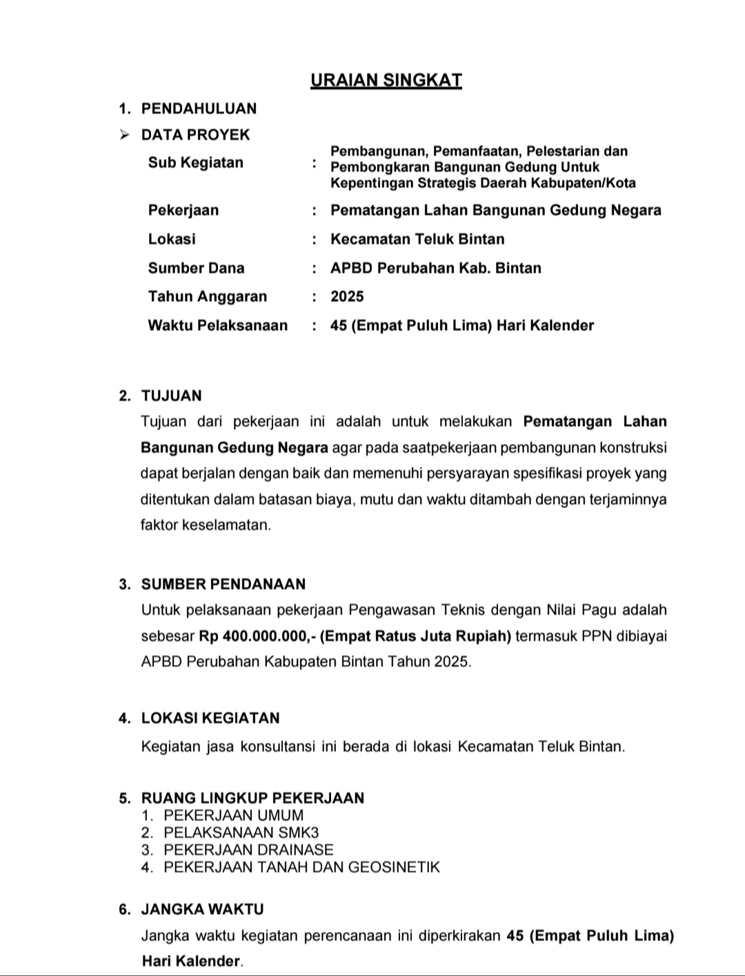 Bintan, harianemtropolitan.co.id – Proyek Pematangan Lahan Bangunan Gedung Negara pada Dinas Pekerjaan Umum, Penataan Ruang dan Pertanahan (PUPR) Kabupaten Bintan dengan nilai pagu Rp 438.000.000 memantik sorotan tajam. Dugaan penyimpangan dalam penetapan subklasifikasi Sertifikat Badan Usaha (SBU) pada proses pengadaan langsung dinilai bertentangan dengan ketentuan hukum yang berlaku.